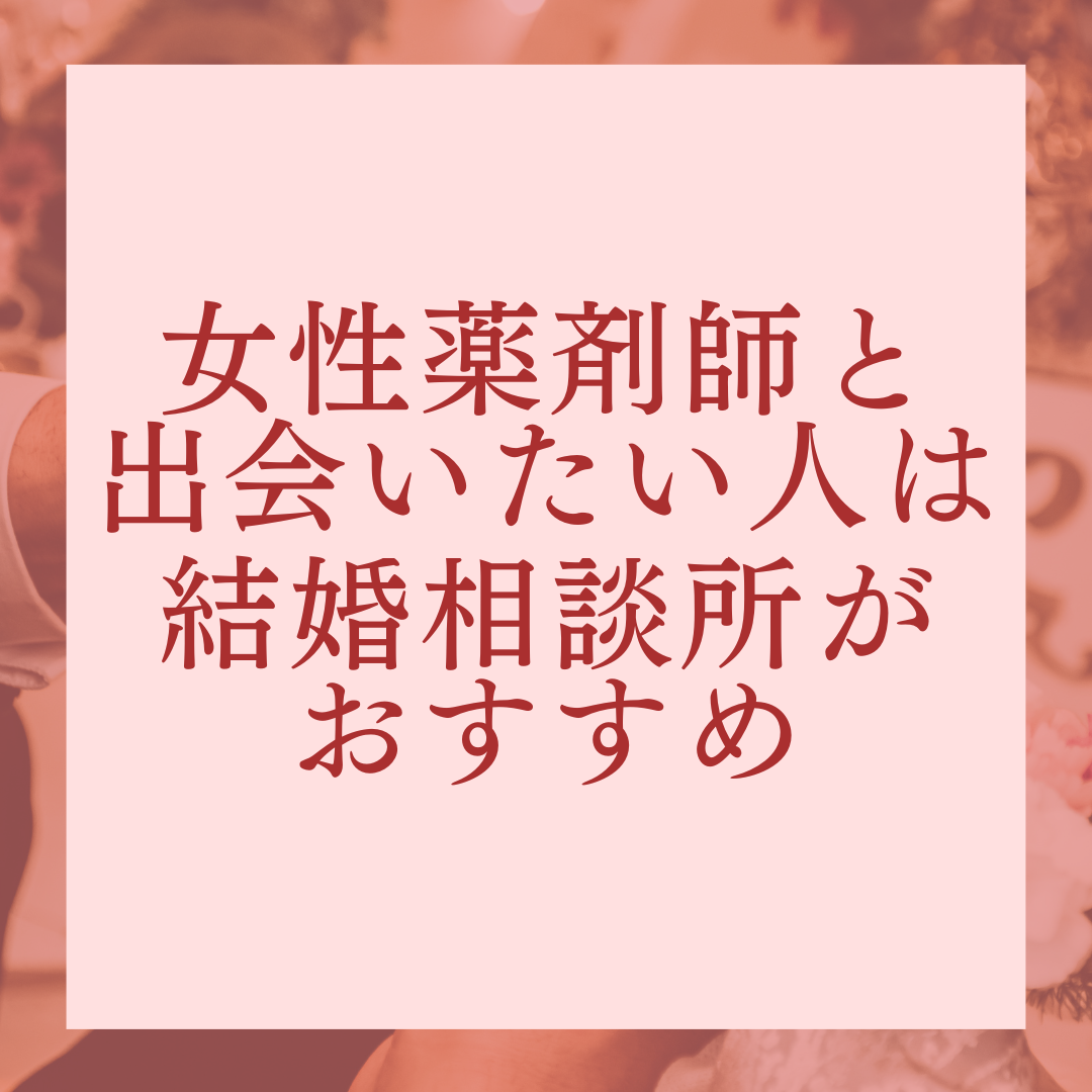 • 女性薬剤師と結婚したい男性の皆さんは、結婚相談所でお相手を探すことが近道です。女性薬剤師は手に職の安定・勤勉さ・恵まれた職場環境があります